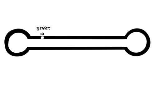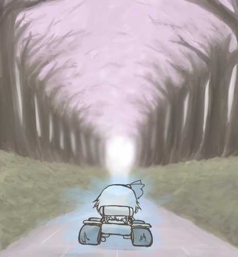 両端にある大きな桜の木をぐるりと回るように折り返す270度カーブが特徴。