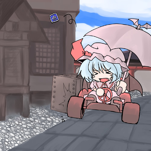 ・博麗神社コース 博麗神社をバックに境内を走るコース。霊夢にはいい迷惑。 直角カーブが多いのが特徴。石畳の外は砂利道となっていて 速度が殺されやすく、ハンドル操作もしづらい。 障害物の賽銭箱にぶつかると点アイテムを奉納させられてしまう ので、注意が必要。 なお、途中の入りづらい場所にある鳥居をくぐると、ショートカットの ご利益にさずかる事が出来る。ただし相当入りづらい