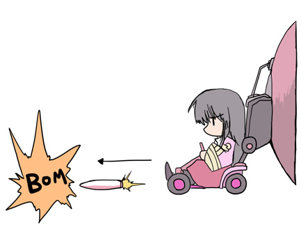 LEVEL1:ロケットランチャー ライバルか障害物に当たると爆発し、周囲を巻き込んでスピン させる攻撃。着弾点が近すぎると自分も巻き込まれる。 |