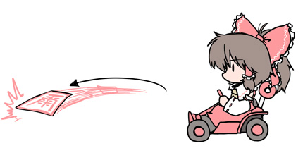 LEVEL2:夢想封印 当たるとスピンする、追尾するお札を投げる。 設置出来ず、壁に当たると消える。 |