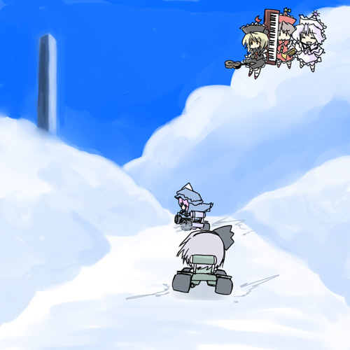 ・天空の花の都コース 青空の下、雲の上を走っていくコース。 全て雲で構成されている為、コースが若干把握しにくいが、 トラップ関連は特に無く コースさえ把握してしまえばどうにかなる。 また、ステージ中にある4本の柱の近辺だけ、カーブが急になっているのが特徴。 このステージで毛玉を使うと低確率でめるぽになる。 この絵はコースイメージで、プリズムリバー姉妹は実際には柱の近くに1人ずつ居る。 ただし最後の一本の所には誰も居ない。