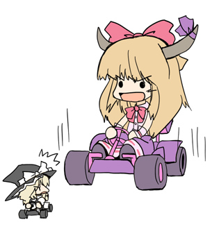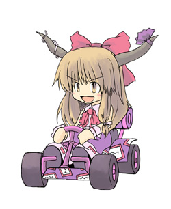 ![]() もう1人の本作のラスボス。 こちらも非常に高いトップスピードを誇り、かつ衝突時のパワーは 全キャラ中最強レベル。立ち上がりは平均より少し高い。 流石に酒は自重しているらしいが、コーナリング能力だけは致命的に低い。 非常に強力な特殊攻撃を持っている。 (出現条件) ルナティックカップを1位でクリアすると八雲紫と共に出現する。 (解禁条件) ルナティックカップを2キャラクリアし、 かつ一度でも紫と萃香に勝つ 立ち上がり:★★★★ 最高速度:★★★★★★ グリップ:☆ パワー:★★★★★★ |